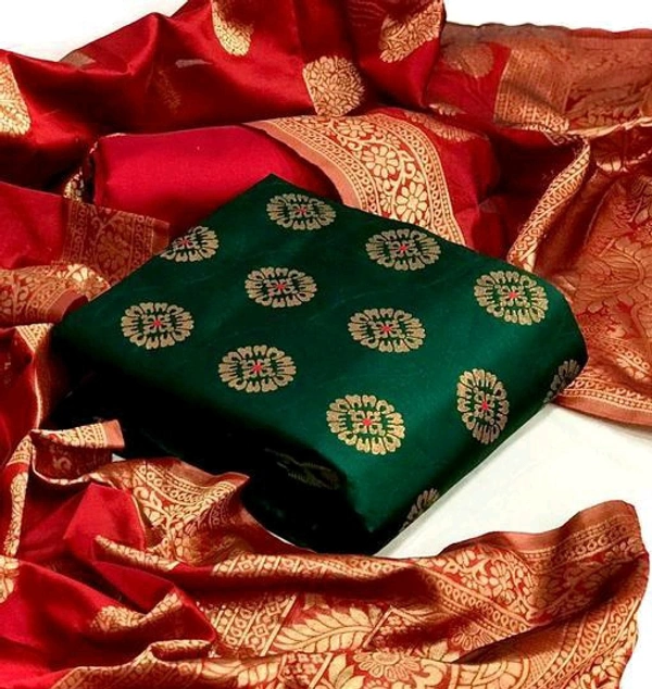 Women's Green Floral Zari Woven Jacquard Suits & Dress Materials